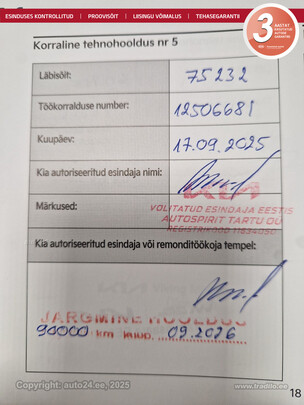 - Viimane : 75232km ja 17.09.2025a